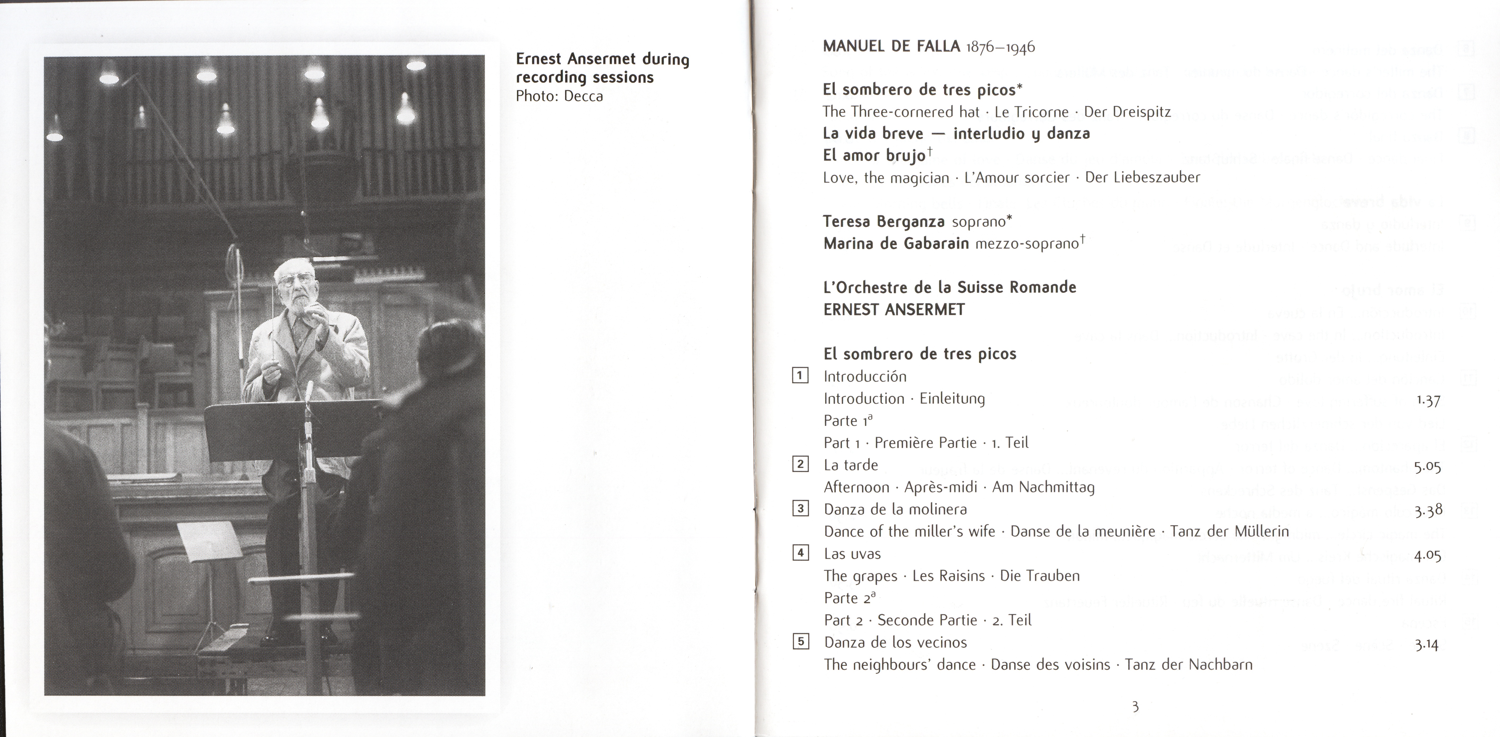 Falla_Three-cornered Hat, etc - Berganza, Ansermet & OSR